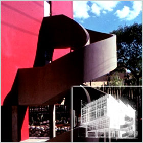 ディエゴ・リベラとフローリダ・カーロの二人は、ともに近代メキシコを代表する画家であったが、1989年に結婚、リベラは二人のアトリエ兼住居を、当時まだ若かった建築家ファン・オゴルマンに依頼する、。オゴルマンは1931年に計画に着手、建築は1932年に完成している。